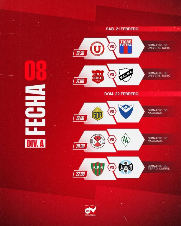 Este viernes 20 de febrero se estará jugando la cuarta fecha del Segundo Campeonato Salteño de Futbol Sala Femenino, correspondiente a la 1ª fecha de la Segunda Rueda, donde sobresale el juego entre Tigre que ganó la Primera Rueda y Huracán. Los partidos se estarán jugando con éstos detalles: