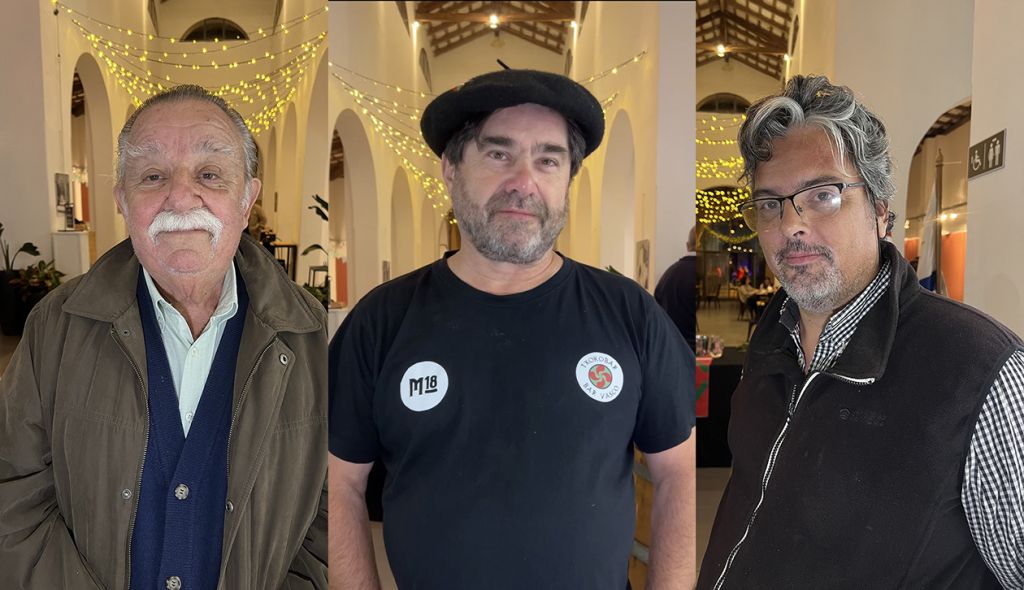 Luis Bertolini en representación de la Asociación de Productores Vitivinícolas, Luis Zaldúa y Jorge de Souza, gestores del Mercado 18 de Julio.