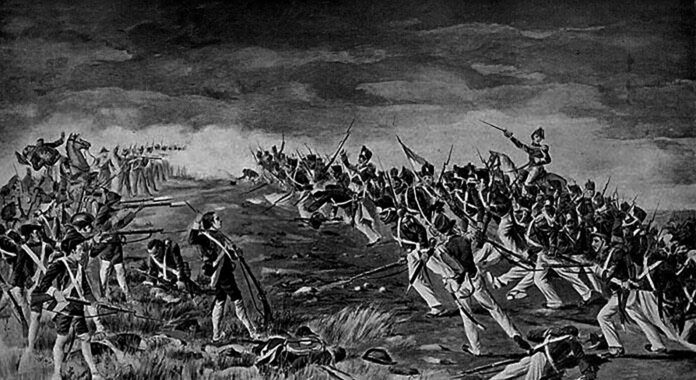 Ejércitos y hombres en posición de ataque hace que la arremetida de los caballos del ejército centralista fue esperada pie en tierra por los orientales, sabedores de la debilidad de los caballos enemigos.