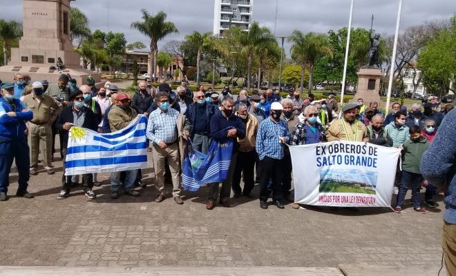 Movimiento Ex Obreros de Salto Grande convocó a los ex obreros de Salto Grande y a sus familias para la asamblea pública en Plaza Artigas, el pasado sábado 16 de julio a las 10 de la mañana. Asimismo se presentó nota ante la Junta Departamental de Salto, para que se proclame de interés departamental el reclamo histórico y social que viene llevando adelante el Movimiento Ex Obreros de Salto Grande. También se solicitó a los tres diputados por Salto, que soliciten al Poder Ejecutivo que pongan en la rendición de cuentas el resarcimiento económico a los ex obreros de Salto Grande. “Todo Salto Unido por una Ley Reparatoria”.