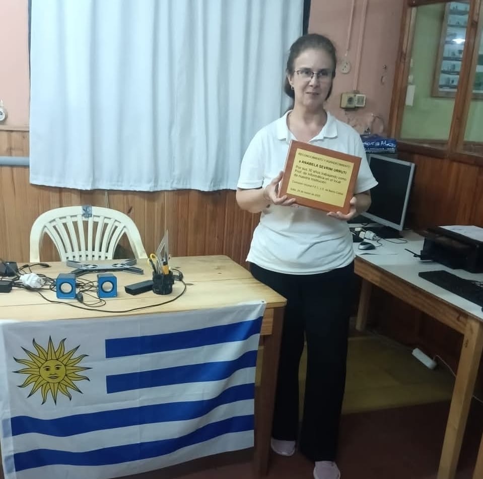 La Comisión Vecinal de Barrio Ceibal acaba de hacer un sentido reconocimiento y agradecimiento a la profesora Anabela Sevrini Urruti, por sus 30 años de trabajo como docente de Informática en su local. En un cálido acto le fue entregada una placa. Cabe recordar que esta Comisión Vecinal viene realizando, desde hace varios años, una intensa labor educativa con cursos no solamente de informática sino también de costura, crochet, danzas, gimnasia, defensa personal, yoga, repostería, entre otras disciplinas.