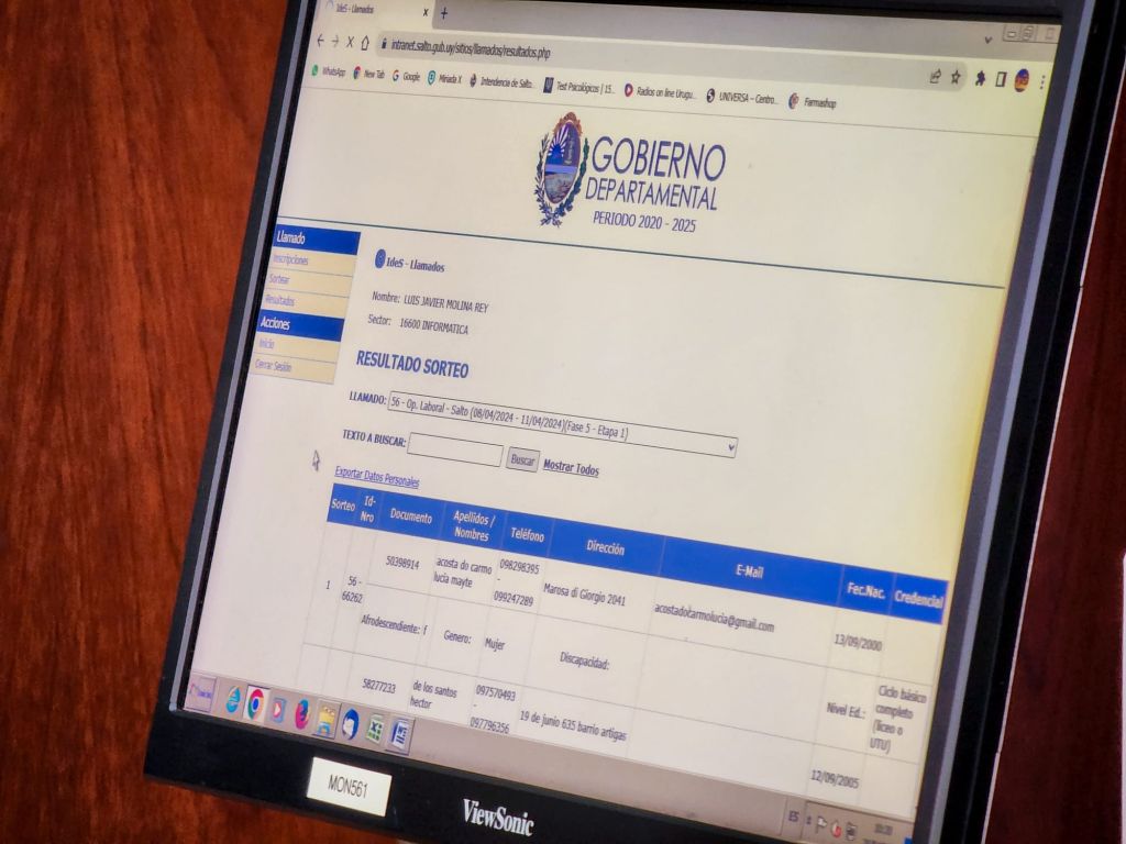En el sorteo estuvieron presentes el secretario general de la Intendencia de Salto, Gustavo Chiriff, la escribana Lourdes Campanella y técnicos de Cómputos. Chiriff informó que, del total de 451 cupos asignados al departamento de Salto, 356 se destinan a la Intendencia de Salto y 95 a los municipios. Dentro de la Intendencia, los beneficiarios seleccionados desempeñarán funciones en los sectores de Tránsito, Servicios Públicos (áreas verdes y cuadrilla de apoyo), Obras, Recolección, Descentralización y Vigilancia. Por lo tanto, desde esas oficinas se los estará convocando para informarles las tareas a realizar.