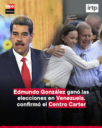El Centro Carter, ente encargado de la misión de observación sobre las elecciones en Venezuela, aseguró que el ganador de los comicios fue el candidato opositor Edmundo González Urrutia. Esta organización fue invitada por el Consejo Nacional Electoral (CNE) a observar las elecciones que tuvieron al actual presidente de Venezuela como el candidato reelecto con más del 50% de los votos. Maduro afrontaría, en este marco, un nuevo mandato de seis años. El CNE no dio a conocer las actas correspondientes y al mismo tiempo alega que el retraso se debe a un hackeo, mientras Maduro denuncia un "golpe de Estado ciberfascista".