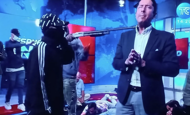 La intimidación en directo duró unos 30 minutos y luego se observó el ingreso de policías. Desde hace dos días el país sudamericano vive noches de terror ante una ola de violencia con policías secuestrados, fuga de capos criminales presos y ataques con explosivos que llevó al gobierno a ordenar el lunes el estado de excepción por 60 días.